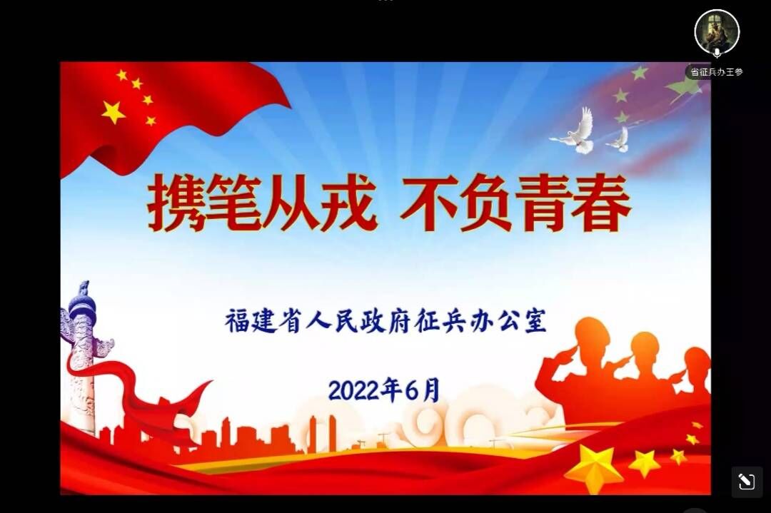 于腾讯会议平台开展征兵宣讲暨毕业生离校教育大会。学院党委副书记谢斌斌及毕业班辅导员出席会议,福建省人民政府征兵办公室王志鹏参谋应邀参加,天使动漫