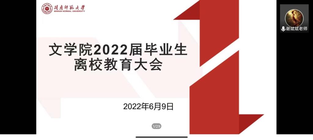 2022届本科及硕士毕业生远程参会。会议由许新华主持,共有三项议程:毕业生离校教育、征兵宣讲及毕业生离校手续主题班会。