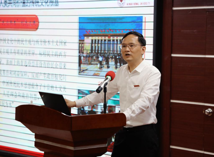 报告中,李顺兴围绕“人类共同价值的传统文化根基、人类共同价值的中国治理方案、人类共同价值的青年使命担当”三个方面,阐释了《中共中央关于党的百年奋斗重大成就和历史经验的决议》提出的人类共同价值的深刻含义。他说,党的十九届六中全会通过的《中共中央关于党的百年奋斗重大成就和历史经验的决议》提出,要大力弘扬“和平、发展、公平、正义、民主、自由”的人类共同价值。学习“人类共同价值”就要学习习近平总书记解答时代之问、引领时代之路的世纪强音,感悟习近平总书记的家国情怀、天下情怀、人类情怀,借此拓宽全球视野,增强文化自信,激发青春潜能。