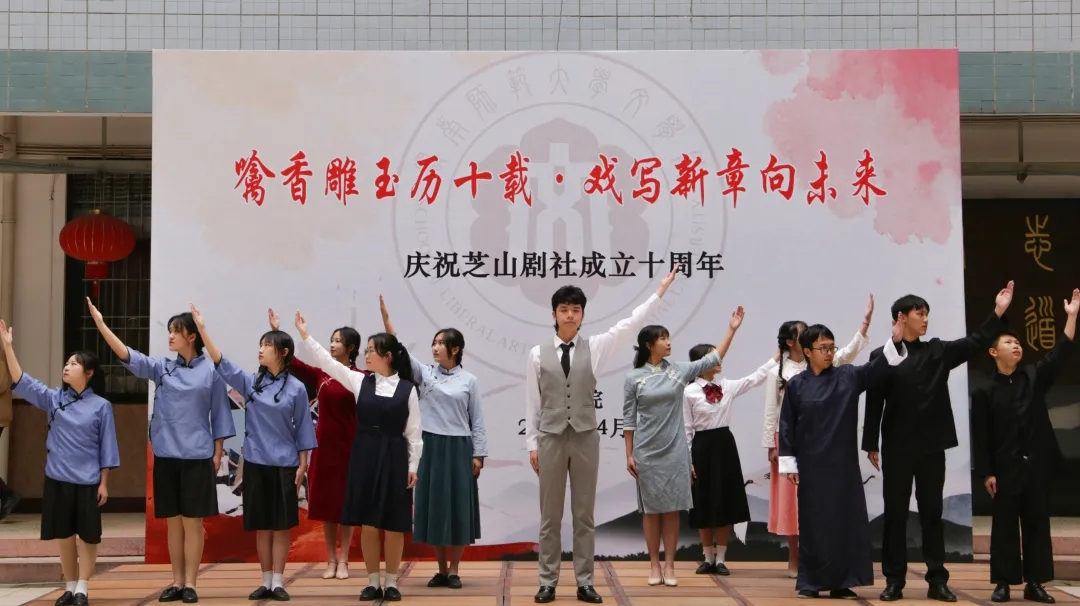 噙香雕玉历十载,戏写新章向未来。十年历程,芝山剧社成员携手并进,用热爱丈量前路。几转春秋,在戏中演绎百态人生;琅琅书声,在诗里咏颂青春热忱。忆往昔峥嵘岁月,展未来宏图之志。今日献礼芝山剧社的十年漫道,天使动漫