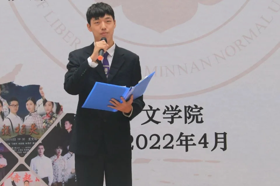 4月21日上午,芝山剧社成员带来了独诵《念奴娇·红军克漳》。他一袭西装笔挺,用磁性的嗓音,将故事娓娓道来,引领我们回到那段峥嵘岁月。循着诗篇,我们仿佛看到了浩浩荡荡的队伍,也看到先辈们的红色芳华。他们将演与颂完美融合,怀念历史中那些敢于为国发声为国献身的热血青年,亦展望无数中国青年前仆后继的新兴时代,充分彰显了芝山剧社的传承红色经典与打造中文特色两大发展理念。初心映得锦旗红,壮志迎来徽章朱。他的一字一句皆让我们心神激荡,豪情万丈。这些年走来,风雨如晦。但我们必将不改初心,以璀璨红星,映照花开。