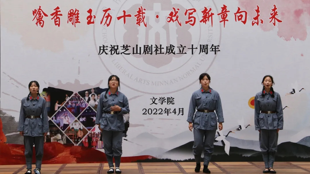 4月22日下午,芝山剧社成员朗诵《漳州战役》,同学们身着军装,他们声情并茂,热情激昂,引领在座师生走入红色经典,感受“红色魅力”,领悟勇敢与智谋的维系,获得在场热烈掌声。聆听百年党史,且看至今百年行,芝山脚下,话剧《施家姐妹当红军》四姐妹入红军的先烈事迹被芝山剧社成员们娓娓道来,她们表演投入,引人入胜,将无数鲜活的细节展示出来,让人产生心灵的碰撞,歌颂新兴时代女性坚贞力量,发掘历史规律。最后,现场观看的领导和老师与芝山剧社成员进行了合影留念。