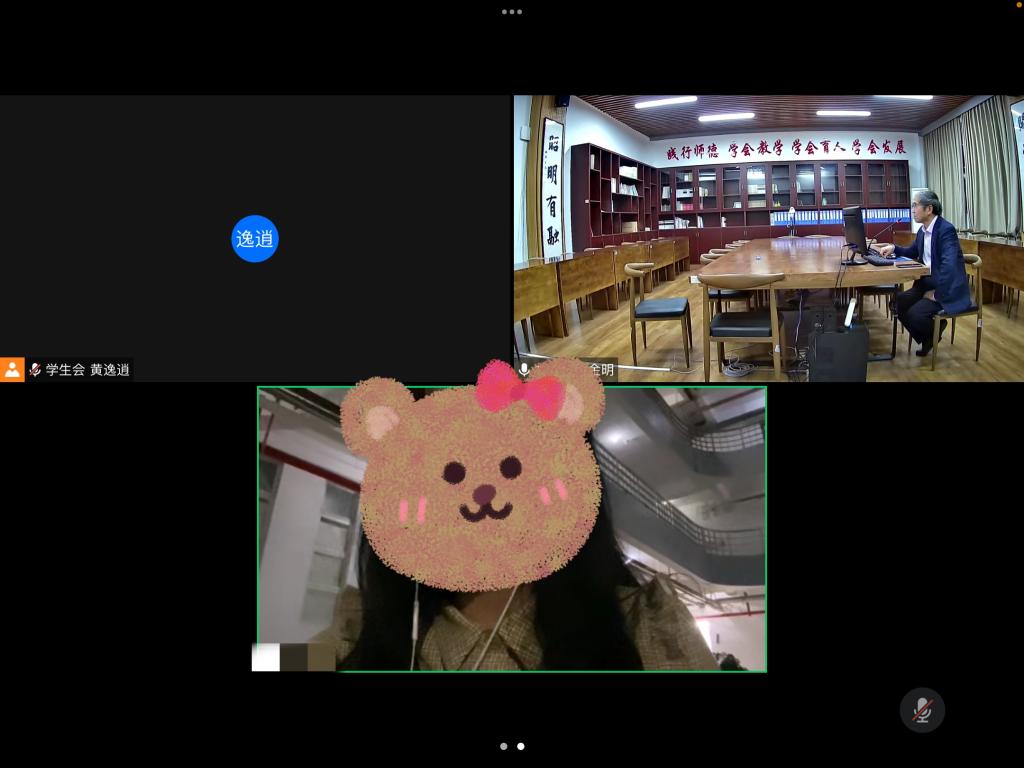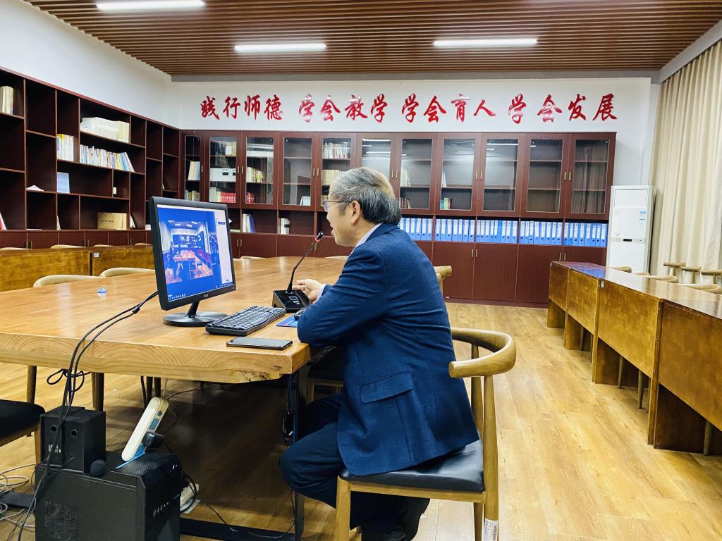院长黄金明与咨询学生进行一对一云上谈心活动,为学生学业发展和身心健康成长提供导向性服务。