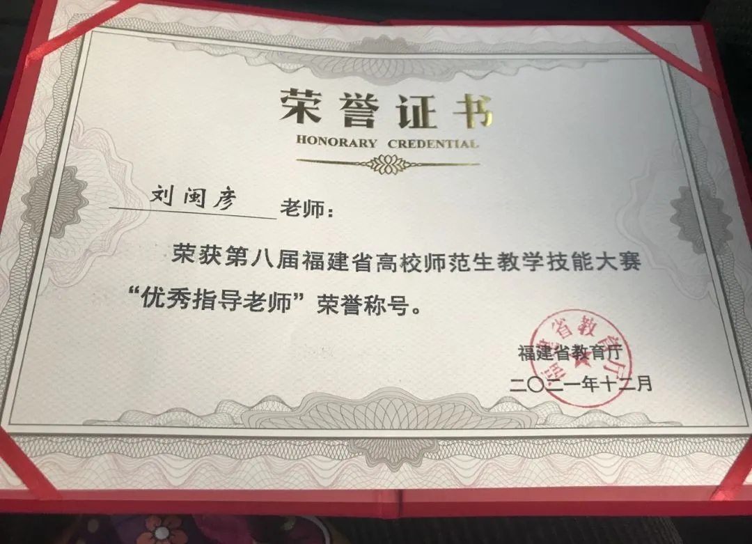 选派3名师范生参赛,与来自全省多所高校师范生展开激烈角逐,喜获佳绩。18级师本四班郑丹妮获初中语文组一等奖,18级师本一班潘琳、18级师本五班陈锴妮均获初中语文组二等奖。指导老师刘闽彦副教授获评“优秀指导老师”。