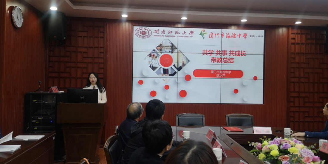 魏水萍老师作为实习指导老师代表作“共学、共事、共成长”为主题的总结报告,从了解班情学情、班主任工作、学科教学三方面全面介绍实习生在校表现,以“真看、真学、真体验”三个词凝练教育硕士联合培养示范基地共建意义。卓琳、王志依作为实习生代表分别作实习总结汇报,均表示此次实习收获颇丰,教师专业技能得到全方位地锻炼与提升,为今后走上教师岗位奠定坚实基础。