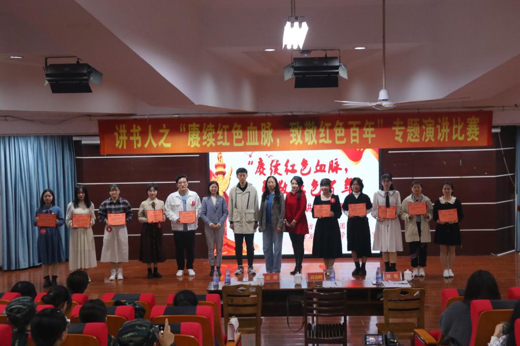 经过初赛选拔,10名选手分别选用《红星照耀中国》《平易近人》《最可爱的人》《小二黑结婚》等经典红色文学作品,依托红色经典,凝练红色精神,融入自身对红色作品的理解,娓娓道出中国共产党百年征程背后的故事,声情并茂地分享阅读作品后的感想。经过激烈角逐,冯玥讲述《且窃偷生》荣获一等奖,杨雁茜、施智燊、王心如、吴铮铮荣获二等奖,谢晓芬、陈欣、温捷雅、李慧、王宁荣获三等奖。三位评委老师分别对选手的表现进行点评,指出优点和不足,勉励选手们继续努力、更上一层楼。