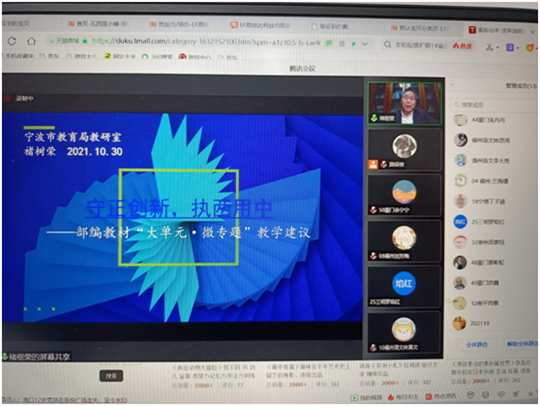 院长黄金明等专家进行线上教学。针对该学科教学展开丰富多样的课程,由高校教授与中学优秀教师共同执教,内容涉及“高中学习任务群教学到底应该怎么教—以‘实用性阅读与交流’学习任务群为例”、“部编本文言文阅读教学与语文核心素养培育”、“文学教育与文学类文本的阅读”和“统编本高中语文选择性必修课程概述及教学建议”等十四个讲座。