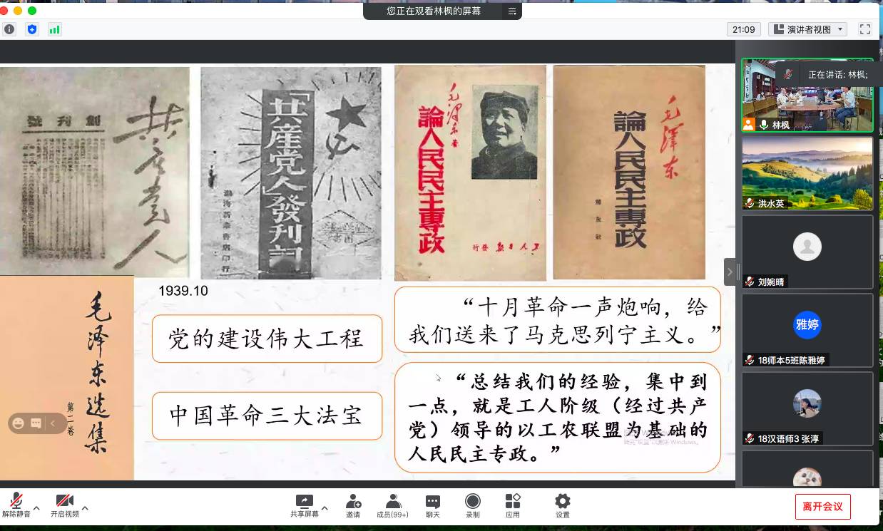 陈教授围绕“七一”重要讲话精神,重点阐述了“四个伟大成就”,以鲜明的时代特征将党的百年历史划分为新民主主义革命时期,社会主义革命和建设时期、改革开放和社会主义现代化建设新时期、新时代中国特色社会主义时期。他指出四个时期有着不同的历史内涵和时代特征,引导大家领会以史为鉴,开创未来的“九个必须”重要意义。此外,陈教授强调建党百年重要讲话的创新点在于创造性阐明“奋斗主题”、创造性提出“伟大建党精神”、创造性要求“两个结合”、创造性宣示“人民观”、创造性发展“斗争哲学”等。