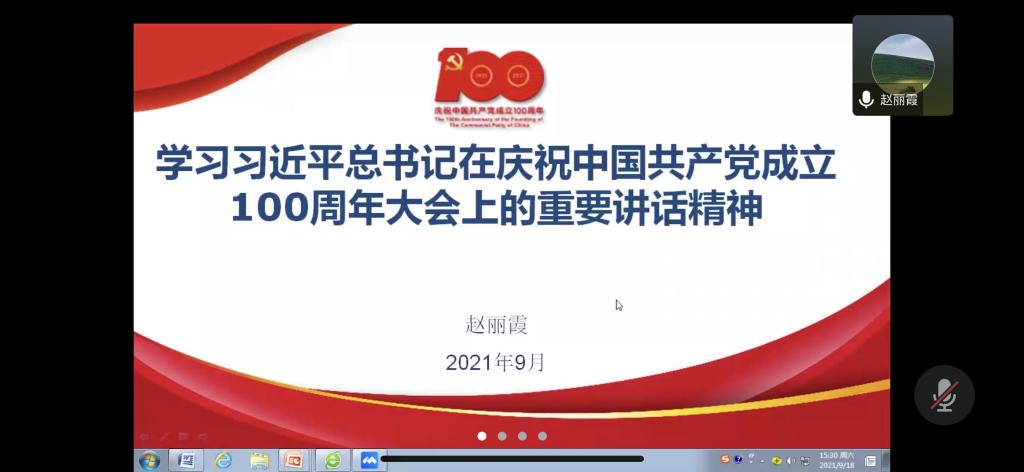 学生第一党支部通过腾讯会议开展“学习‘七一’重要讲话精神”专题党课。本次党课由支部联系人、学院党委书记赵丽霞同志主讲,支部书记许新华主持,支部全体党员参与。