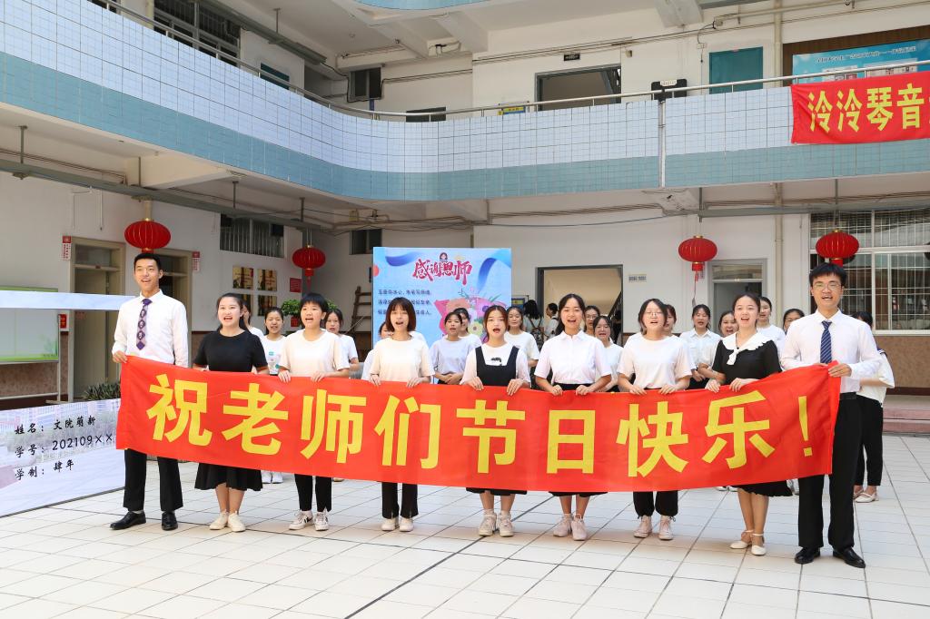 一朝沐杏雨,十年润师恩。此次活动传达了文院学子对老师们的无限感激之情,树立了尊师重教的美德和爱国主义精神,培养了自身今后将成为一名人民教师而感到骄傲的自豪感。学而不厌,诲人不倦,桃李芬芳,其乐融融。老师,您辛苦了!