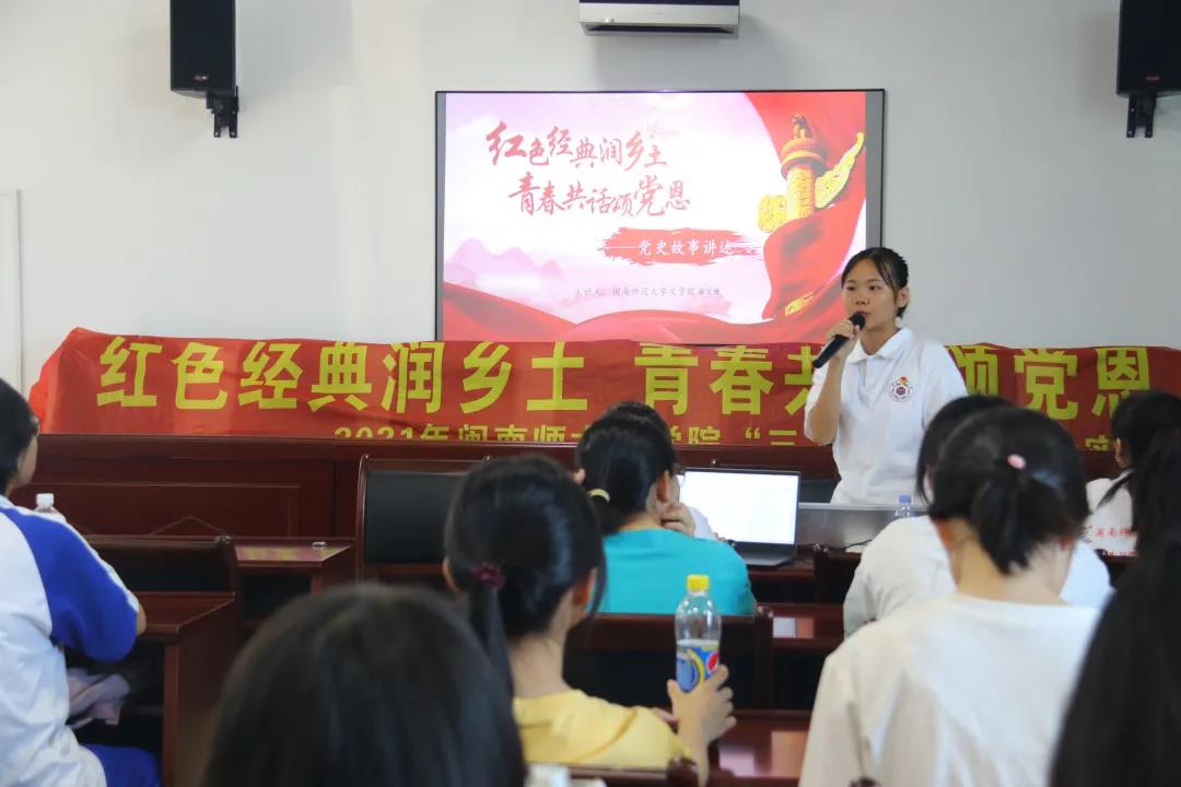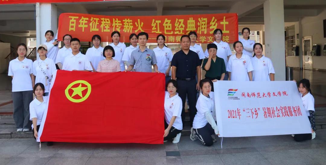 实践团以“红色经典润乡土,青春共话颂党恩”为主题,于7月10日正式启程。学院党委副书记谢斌斌,团委副书记黄小乐,中文系主任肖模艳以及辅导员廉子群带领学生前往长泰区岩溪镇长泰二中开展为期三天的暑期社会实践活动。实践团以长泰二中高二学年的学生为主要对象,辐射周围社区及村民,营造研读红色经典,体验红色文化,致敬红色先贤的氛围。