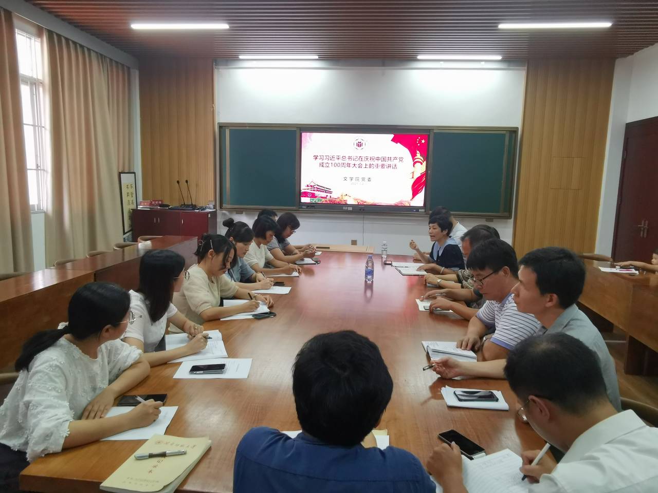 会上,赵丽霞带领与会人员认真学习了习近平总书记在庆祝中国共产党成立100周年大会的重要讲话精神。赵丽霞指出:高校是坚持党的领导的坚强阵地,落实立德树人根本任务,最根本的保证还是党的领导,要充分发挥党建引领事业的核心作用,立根固本,让伟大建党精神在师生群体中深深扎根、代代相传。我们要把学校学院各项事业放在国家发展全局和高等教育格局中来审视分析,坚决为党和人民守住高校这块育人阵地,弘扬中华优秀传统文化,赓续红色血脉,牢牢把握意识形态主动权,为推动人的全面发展做出新的贡献。各级党组织应当高度重视对讲话精神的学习领悟,做到会前每人提交心得体会,会中每人轮流发言,会后继续深入学习领悟,争取凝炼为理论文章或者专题党课精品。各支部书记要将学习习近平总书记在庆祝中国共产党成立100周年大会的重要讲话精神作为当前及今后一段时期的重要政治任务,真抓实学,走实走深,与党史学习教育紧密的结合起来。