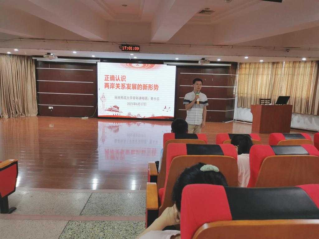 青年讲师团讲师黄小乐老师以“正确认识两岸关系的新形势”为主题展开宣讲,2018级部分同学参加了本次讲座。
