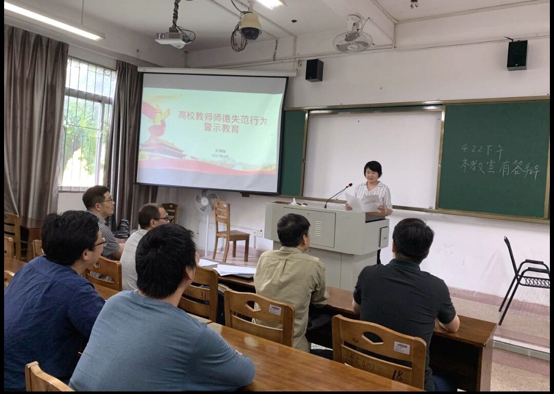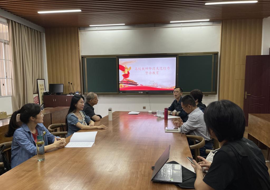 中国现当代文学教研室围绕“高校教师违反教学纪律”事件探讨。案例中违反教学纪律的老师不以教学为重,而是通过期末考试有偿补课,违规帮助学生获奖和收受学生礼金等方式来获取自身利益。通过本次警示,老师们也更加警醒了“廉洁无小事,作风建设一直在路上”。