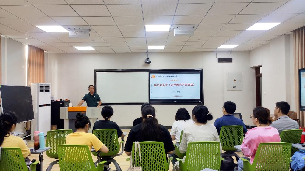 在博东107教室开展学习习近平《论中国共产党历史》专题党课。本次党课由党委副书记谢斌斌主讲,教工第二党支部部分党员和学生第三党支部党员参加学习。