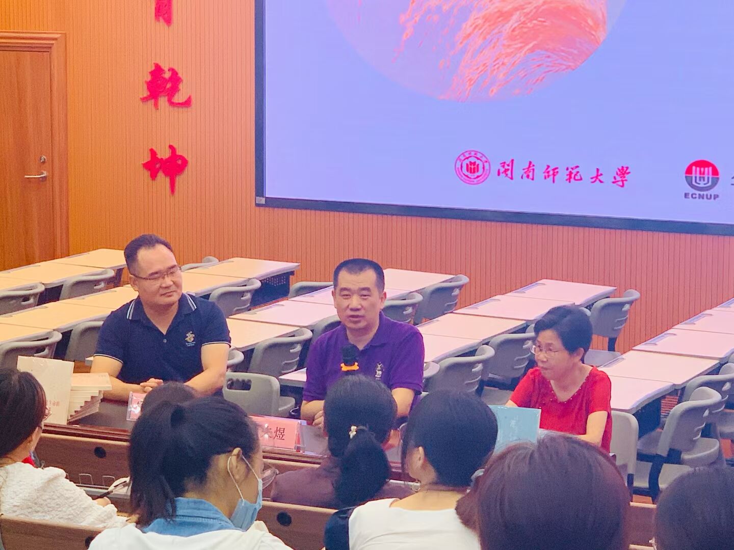 院长黄金明、副院长杨杏红,教务处副处长杨娟娟,漳州台商投资区社管局分管领导朱君民,华东师范大学出版社策划编辑朱永通,明日教育研究院院长林再强以及天使动漫