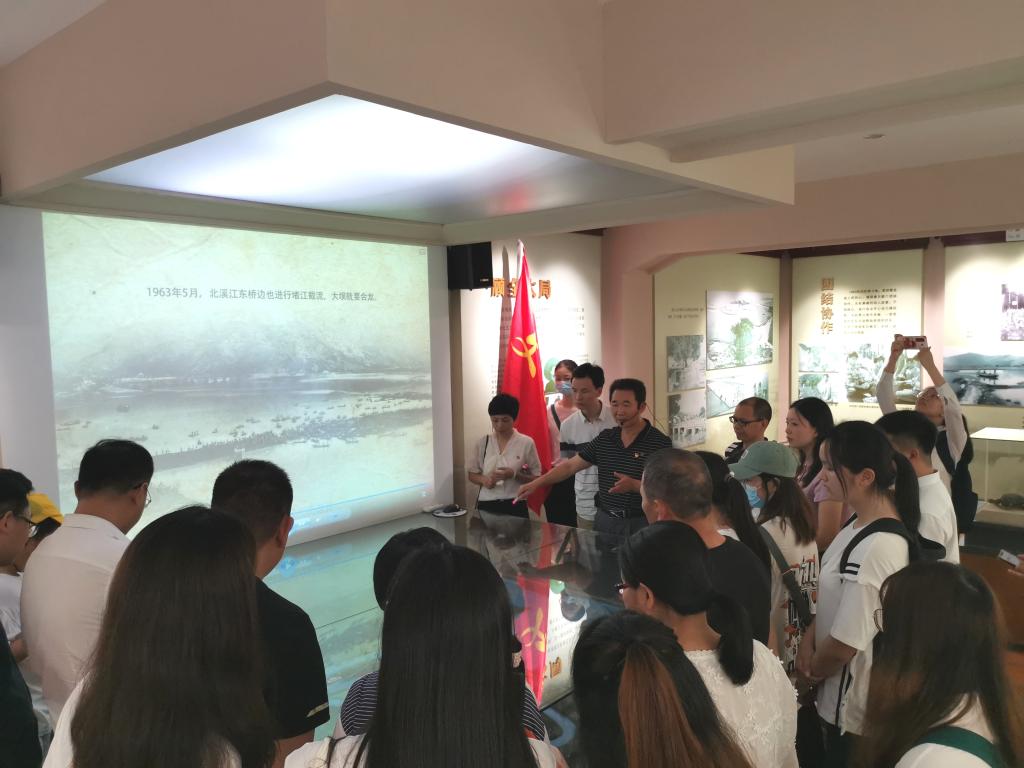 在林兆明馆长的导引下,党员们参观了龙江颂展馆的南北园区,对公字闸等水坝设置与功能有大致的了解,当年龙海遭遇特大旱灾,堵江截流,舍己为人,每一步的抉择都是如此慎重与果决。在龙江精神展示馆里,林馆长介绍龙江精神的由来和那段抗旱斗争的始末,“首堵西溪”、“北溪堵江”、“群策群力”、“淹三千,救十万”等都凝聚着党员干部们的智慧、魄力和人民群众的团结协作、积极配合。党员们认真参观了各个展厅并观看了京剧《龙江颂》的经典片段,聆听龙江那段堵江抗旱、战天斗地的历史,学党史,悟初心,接受党性教育,领略“团结协作、无私奉献、顾全大局、舍己为人”的大局意识。