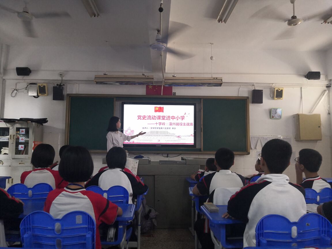 党史学习教育的部署安排,学生第六党支部开展党史流动课堂走进中小学活动。31名实习支教党员化身红色讲解员,在云霄、平和县、长泰等地共16个中小学,将感人的党史传播出去,让先辈的故事从文本中走出,进入中小学生的课堂。