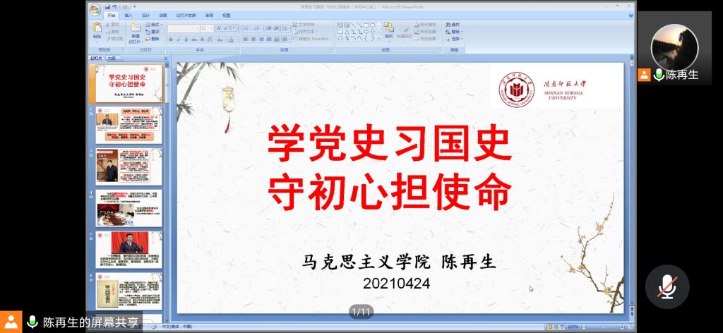 讲授主题为《学党史 习国史 守初心 担使命》专题党课。学院部分师生党员,第二十四期入党积极分子培训班学员参加学习。本次党课由辅导员林嘉霓主持。