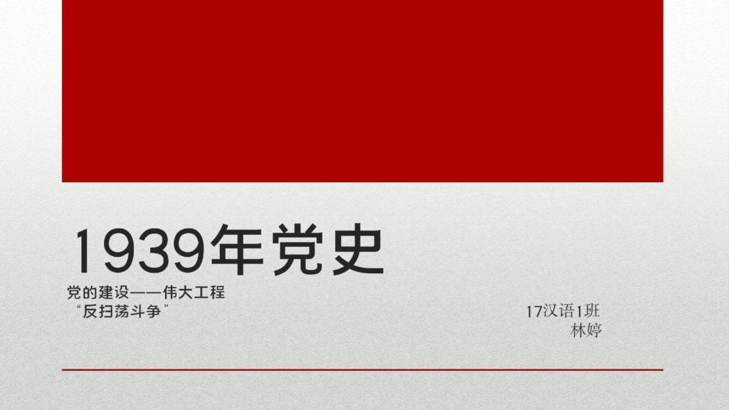 党史关键词之1939年, 1月至二月,任务指出坚决打击卖国的汉奸汪精卫和一切投降反共活动以及开展大生产运动;六月至七月,“号召巩固团结,巩固抗日民族统一战线,巩固国共合作”;八月至九月,党自抗战以来,已经获得很大的发展,在艰巨的抗战任务面前,从思想上、政治上、组织上巩固党,成为完成党的政治任务的决定因素。十月至十二月,统一战线、武装斗争、党的建设是中国共产党在中国革命中战胜敌人的三个法宝。