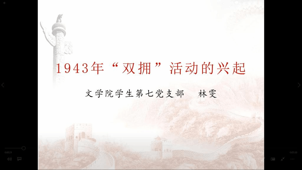 党委于博东109举行“百名党员讲党史”活动。在本次活动中,学生第七党支部张雅琪、占静怡、周尚可、张晨诗、杨采诗、林雯、袁瑞芬、李薇、林婷、董水仙、吴荻、林怡讲述了1938—1949年的党史故事。