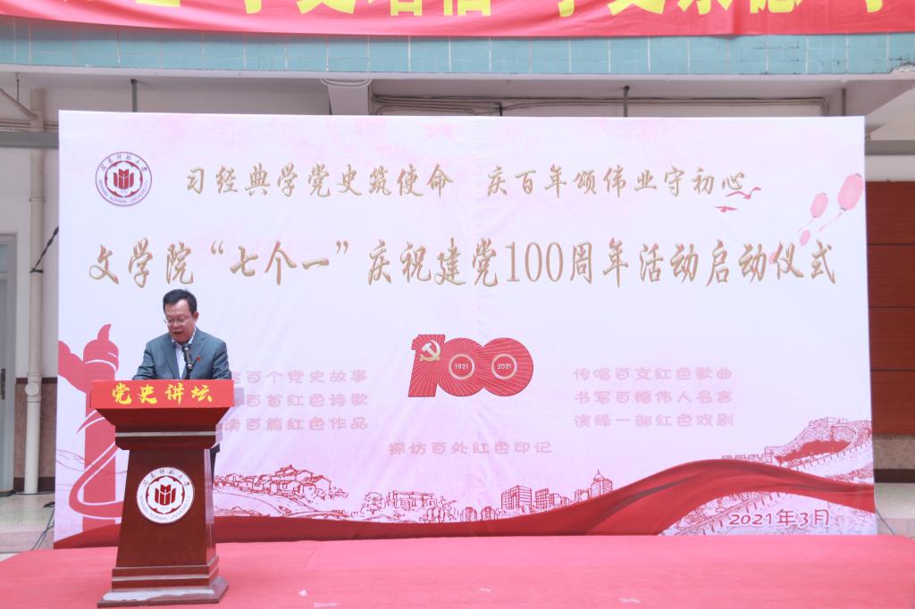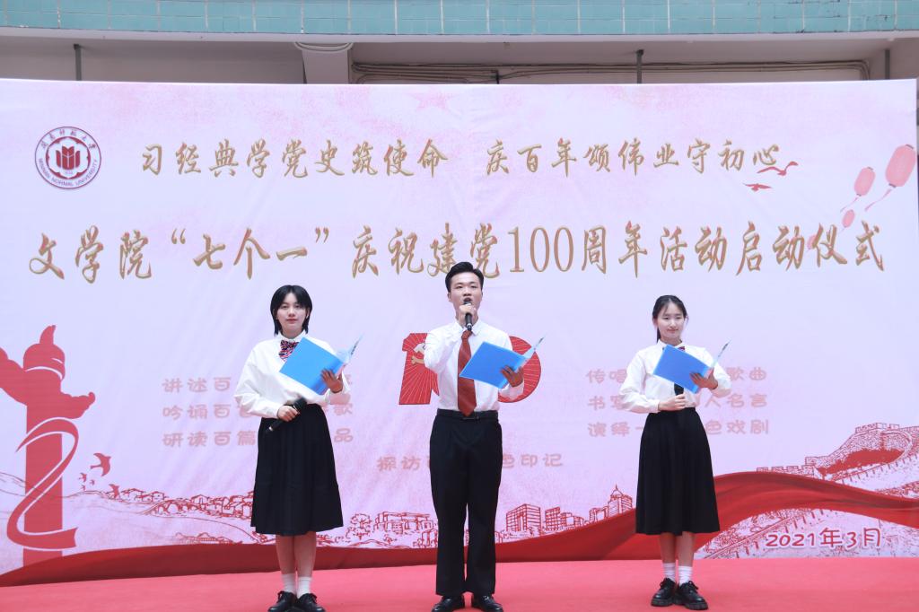 启动仪式结束后,学院党委将以庆祝中国共产党成立100周年为主题,结合党史学习教育,开展讲述百个党史故事、吟诵百首红色诗歌、研读百篇红色作品、探访百处红色印记、传唱百支红色歌曲、书写百幅伟人名言和演绎一部红色戏剧等“七个一”活动。把握党史学习教育的契机,学院将继续发挥专业优势,教育引导师生发扬红色传统、传承红色基因,以饱满的精神、优异的成绩献礼建党100周年。