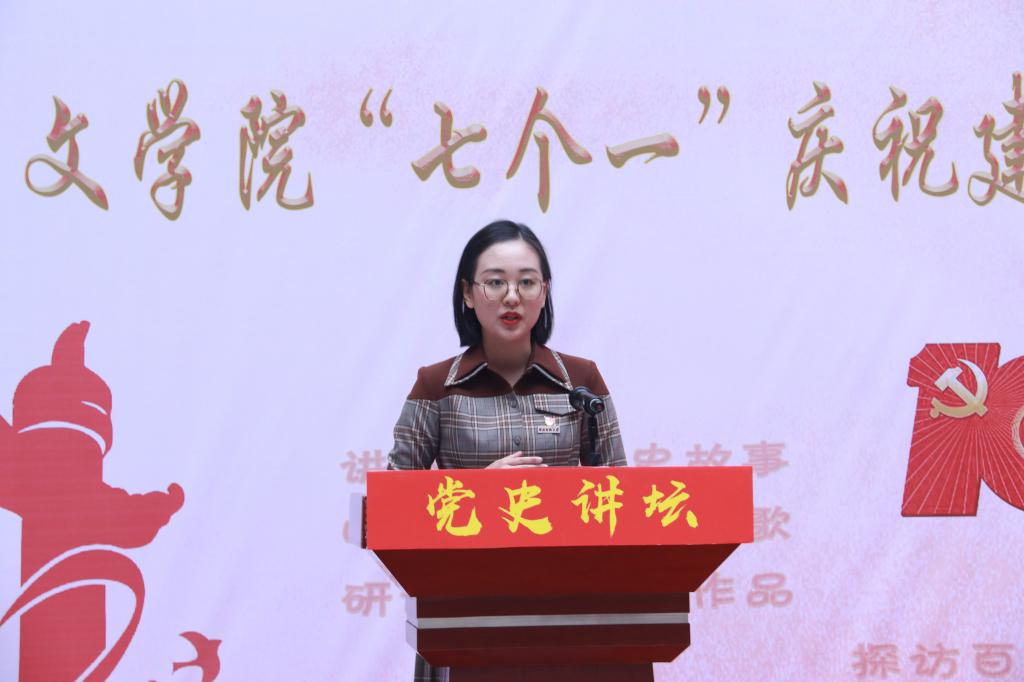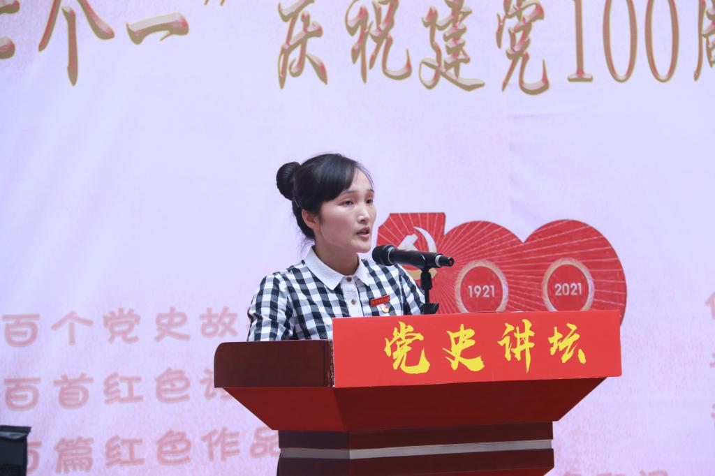 随后是党员讲党史故事,教师党员郑丽霞老师讲述了党史故事《伟大的开端》、学生党员陈煜莹讲述了《一台留声机的故事》,两位党员用讲故事的形式,娓娓道出中国共产党百年光辉历程中两个重要历史节点背后的故事。