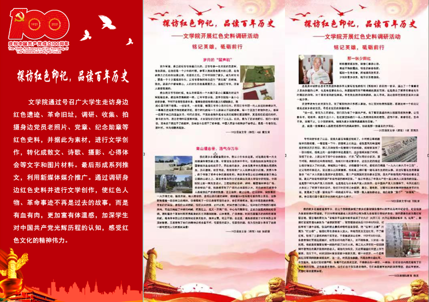 学子利用假期走访身边红色遗迹、革命旧址,拍摄党员老照片、党章、纪念勋章等红色史料后,创作文学作品。这些作品使红色人物、革命事迹变得有血有肉有温度,加深学生对中国共产党光辉历程的认知,感受红色文化的精神伟力。