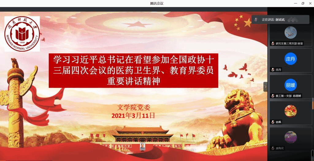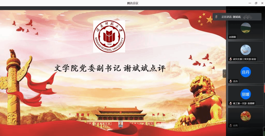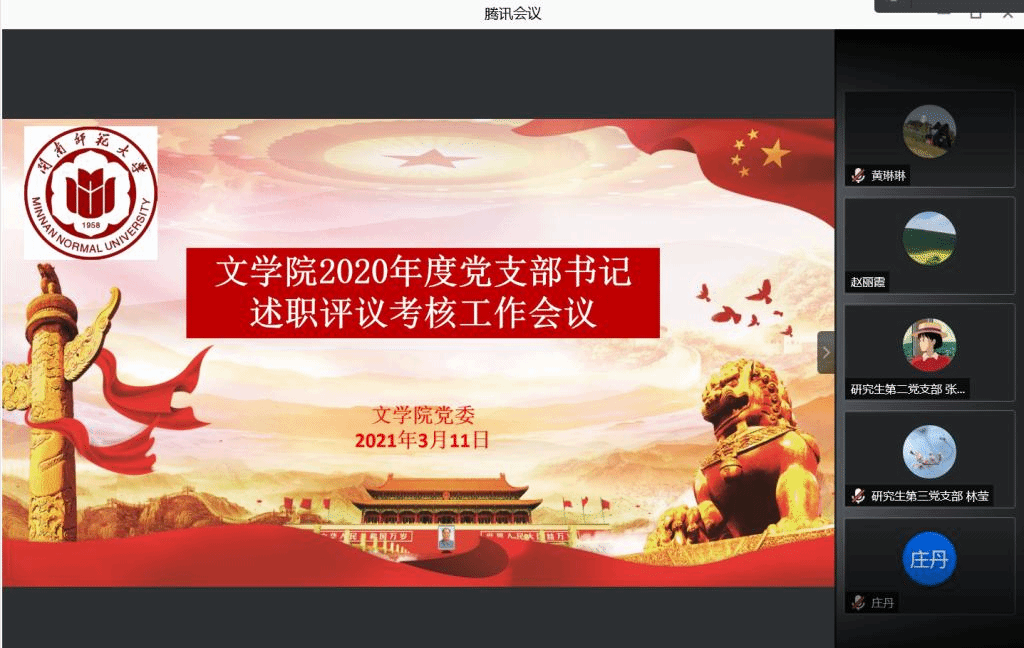 根据学院党委关于基层党支部书记述职评议考核工作的要求,14位党支部书记就2020年度党建工作进行述职,围绕学习贯彻习近平新时代中国特色社会主义思想、执行落实“三会一课”制度、严格履行党员发展程序和上个年度的问题整改规划等方面认真撰写述职报告,经党委审核后,在本次会议中进行线上述职。