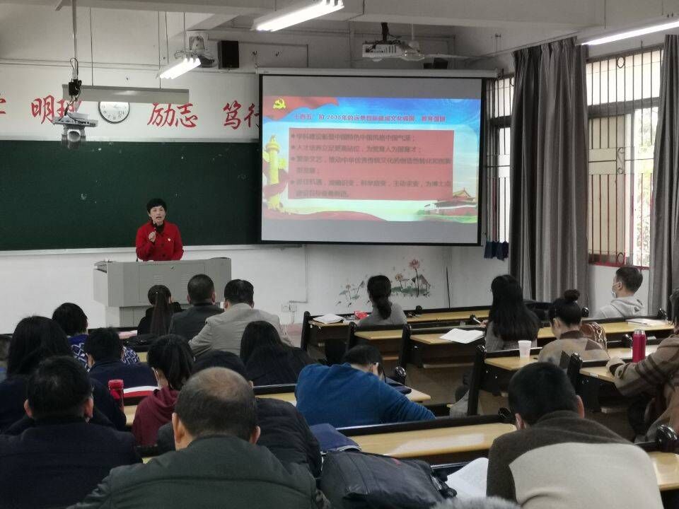 党委书记赵丽霞在博东109,向全体教职工讲授以《弘扬核心价值坚定文化自信》为题的专题党课。本次党课,围绕党的十九届五中全会精神展开,结合学院当前实际,引导广大师生学深悟透弄懂做实,树立文化自信,增强创业斗志,以新面貌规划个人成长与组织奋进。