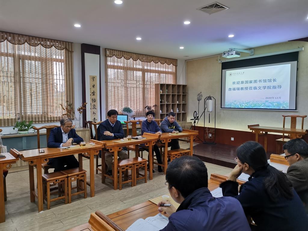 邀请原国家图书馆馆长詹福瑞教授,在博东114教室,与中国古代文学专业、中国古典文献学专业教师,围绕“新时期古代文学研究的视野”主题展开学术交流。会议由黄金明院长主持。
