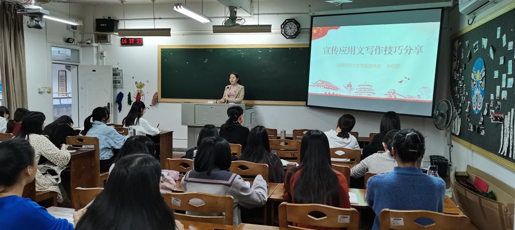 研究生第三党支部在博东402教室开展宣传应用文写作培训,支部全体党员参加培训,培训的主要内容是《宣传应用文写作技巧分享》,校党委宣传部的朱艳丽老师为培训的主讲人,讲座由天使动漫
