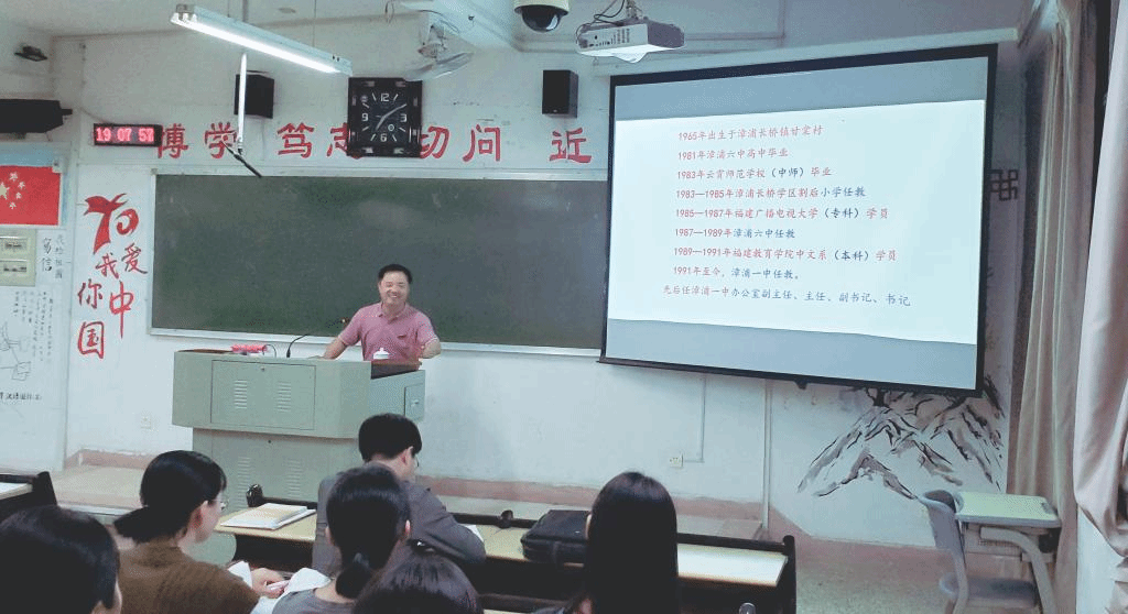 邀请漳浦第一中学语文特级教师陈荣龙,在博东606开展题为“明志笃行 切问近思——谈语文教师的专业成长”的主题讲座。讲座由代顺丽教授主持,2020级教育硕士和教育硕士生导师参加。