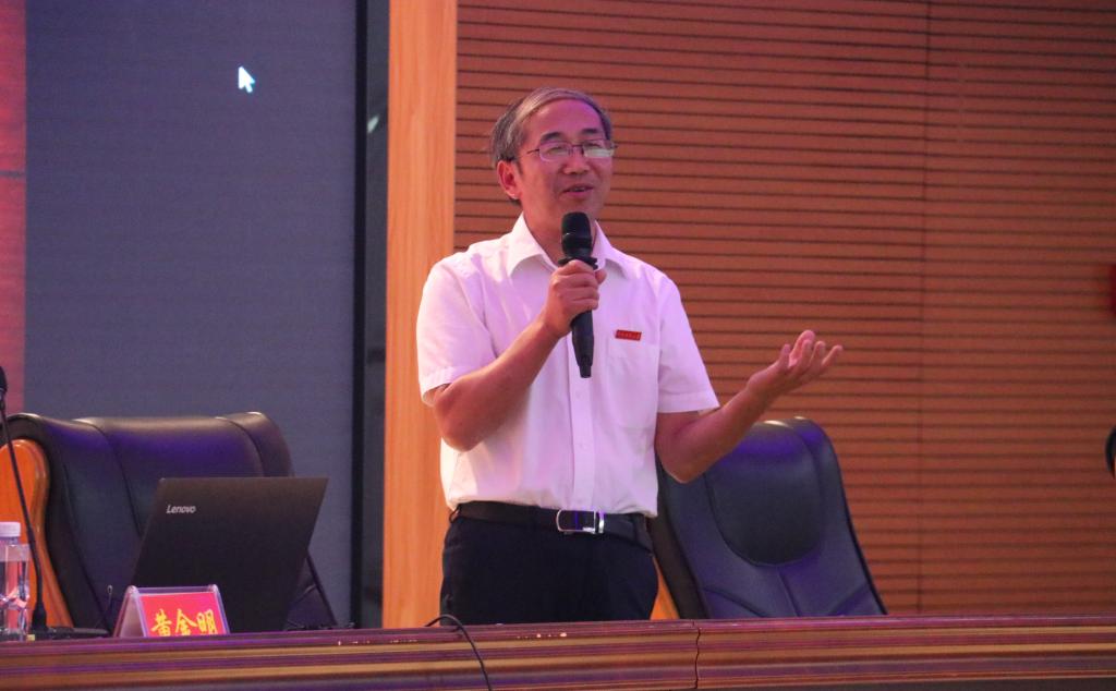 典礼下半场,黄金明院长为新生们带来开学第一课,围绕“中文人的特征是什么?何为中文人?”这一基本问题展开解读。他强调同学们要坚持阅读写作,提高自身能力,才能飞向更远的未来。同时鼓励同学们在课余生活多参与实践,提高自身综合素质,对每一位同学都寄予厚望,希望大家能成为一个合格的“中文人”。