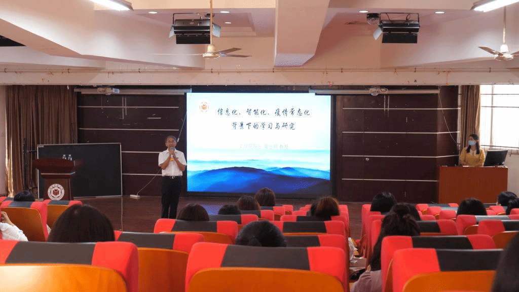 典礼下半场,院长黄金明以《信息化、智能化、疫情常态化背景下的学习与研究》为题开讲入学第一课。院长从当今面临的“大变革时代”讲起,面对信息化、智能化、疫情常态化的今天,同学们要博览群书、拓展自己的心灵空间。从培养自己独特的情感、提升自己的想象力、培养自己创新的精神、训练自己的问题意识这四个方面具体展开。院长鼓励同学们做文化传播的使者,学会引经据典进行文化阐释。最后,院长希望同学们在疫情常态化的学习生活中找到自己的生命节奏,戴口罩,讲卫生,宽容和理解他人,并祝愿同学们精彩的研究生生活。