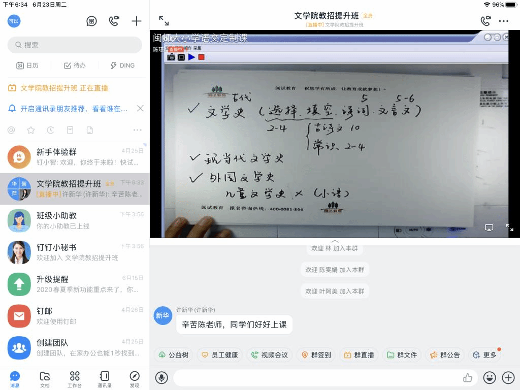 6月23日授课老师主要梳理语文主干知识。根据时间脉络,帮助同学们梳理中国古代文学史的脉络,也提供了一些系统知识梳理办法。6月27日授课老师讲授教育学的命题规律和解题技巧。分析2020年的题型倾向和考查重点,结合历年真题,巩固重要知识点,并讲授重要题型的解题办法。6月28日授课老师讲授教育心理学的命题规律和解题技巧。区分普通心理学和教育心理学的重点概念,着重对学生心理发展教育的重点难点进行解答。7月1-2日为福建省公务员考试申论提升班,授课老师分别从非写作类题型和写作类题型展开讲解。从考试大纲和真题入手,讲述概论归纳类、综合分析类和解决问题类三种题型的答题思路和技巧;从审题立论、开篇结构、论证证据、结尾点题等方面,讲述写作类题型的备考方法,以及对我们提出的写作要求,帮助学生建立答题逻辑和框架。