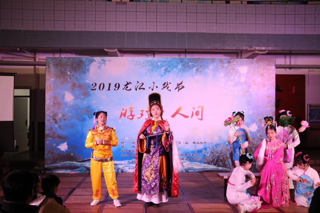 举办以戏剧表演为主题的艺文盛宴—“2019龙江小戏节”。26日晚,首先上演学生自编自导自演的原创剧——《白芒果之恋》,该剧由2017级汉语国际专业的蔡江林同学编导。本次戏剧创作为大学生创新创业计划执行成果,第一次以漳州侨村为故事背景,经过田野调查、名人访谈以及展演指导,呈现出精彩的表演效果。