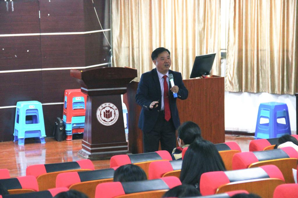 于博西梯一开展“以德立身 以礼处世”主题讲座,特邀漳浦一中党委书记、特级教师陈荣龙主讲。本场讲座由郑丽霞老师主持,18级师范专业全体学生参加讲座。