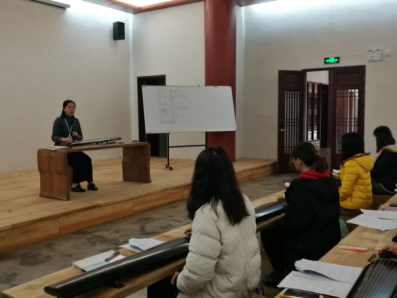 本次实训分为初级班和提高班。初级班由郑伊老师指导,其授课风格讲究稳扎稳打,注重夯实基础,点拨古琴基本指法的要领。在反复练习巩固后,同学们进一步学习了《仙翁操》《黄莺吟》《凤求凰》三首曲目。