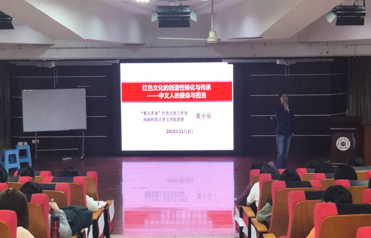 团委主办的“红色文化的创造性转化与传承——中文人的使命与担当”专题培训课程在博西梯一教室举行。本次培训由团委副书记黄小乐主讲,19级各班班委及学生组织代表参加培训。