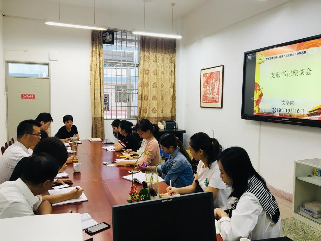 在博东103教室召开“发挥党建引领,探索‘三全育人’协同机制”支部书记座谈会。会议由党委书记赵丽霞主持,党委组织员以及各党支部书记参加。