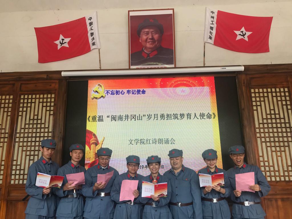 以“薪火芗承”红色文化工作室为依托,组织师生赴东山谷文昌纪念馆、东山保卫战纪念馆开展调研。创作红色文学作品《不朽长歌》,围绕以纪念“五四精神”、庆祝新中国70华诞为主题的红诗创作与朗诵活动。在心为志,发之为情,广大师生党员身体力行,传播革命历史文化,以奋进之笔书写人生华章。