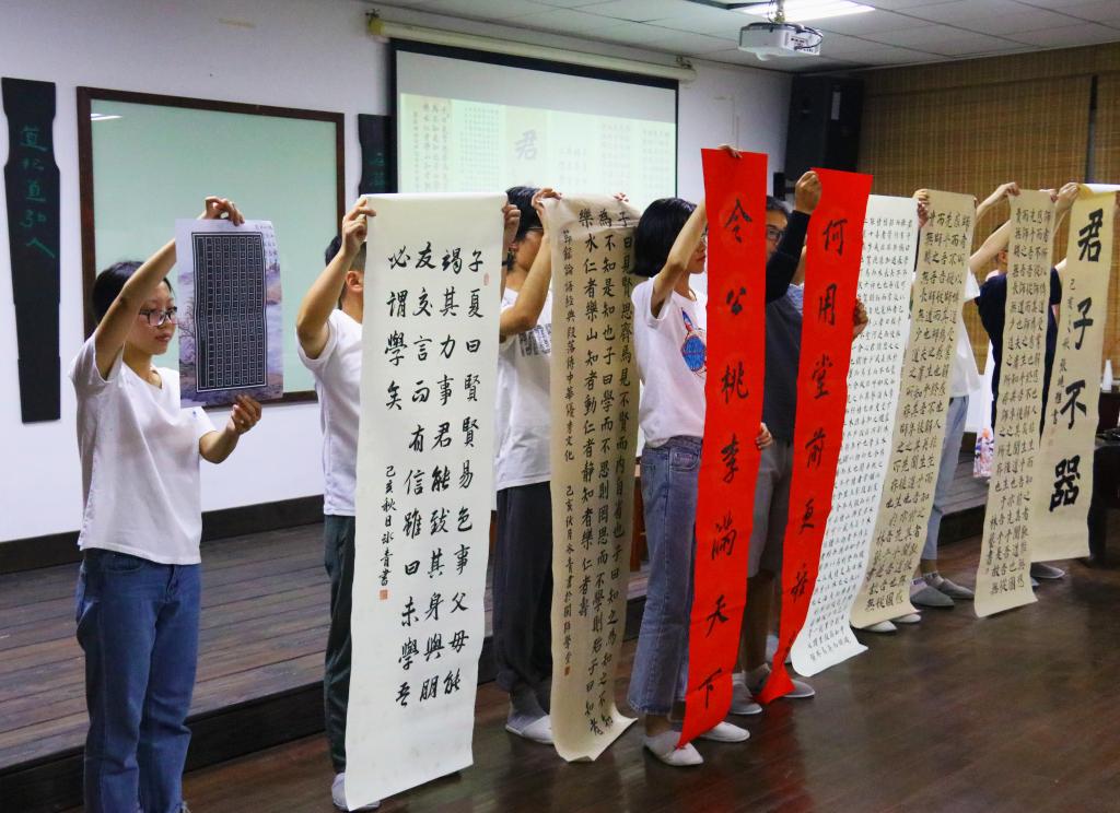 诗会在泠音琴社演奏的《良宵引》的幽幽琴声中拉开帷幕,鼓瑟笙箫,以琴传情,一曲《归去来辞》亦是婉转动听,引人入胜。唐音吟诵社合诵《山居秋暝》《奉和令公绿野堂种花》《赠汪伦》诗三首,诗中有味,曲中含情。芝山剧社主诵部独诵《劝学》,感念师恩,余韵绵长。南风戏曲协演绎歌仔戏《听秋》,声声幽韵,兄妹情谊缓缓铺陈推开,体现出闽南语的文化底蕴。云水茶艺协会演出说茶《一至七字诗·茶》,茶语悠扬,诉万物真情。最后,墨蕴书画协会、泠音琴社、既明文学社一同带来书画展示,书中氤氲墨香,丹青吐露真情。