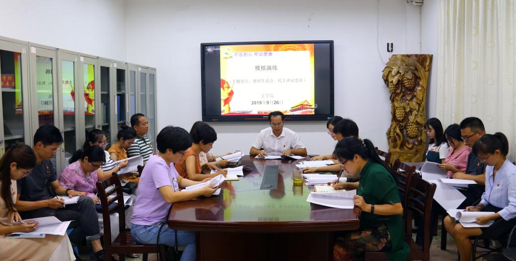 在博东111教室进行党支部组织生活会模拟演练。会议由党委书记赵丽霞主持,学院党委委员、各支部书记共计20人参加了会议。