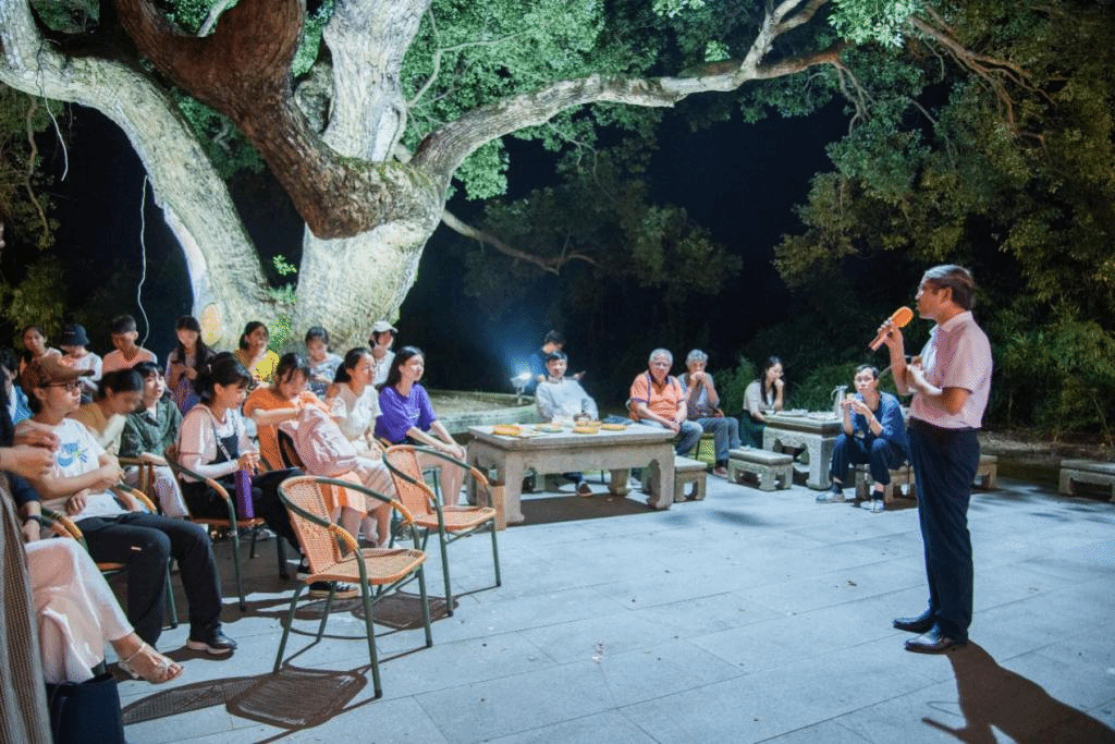 张伯宇老師更带来了巴哈的长笛无伴奏独奏曲,中西文化相碰撞,展现其独有魅力,让在场所有的来宾如痴如醉。节目的尾声由梁疏影以一曲《流水》画上句点,奏知己之情,喜迎客至,宾客尽欢。雅集结束后,师生共聚老樟树下,赏圆月,品香茗,吟诗古樟下,游戏琴歌里,尽显中秋之喜。