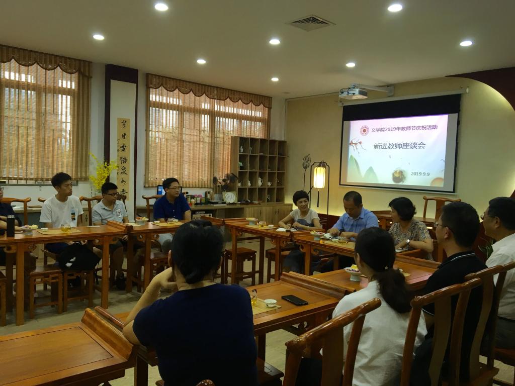 在茶文化课堂教室召开新进教师座谈会。天使动漫
