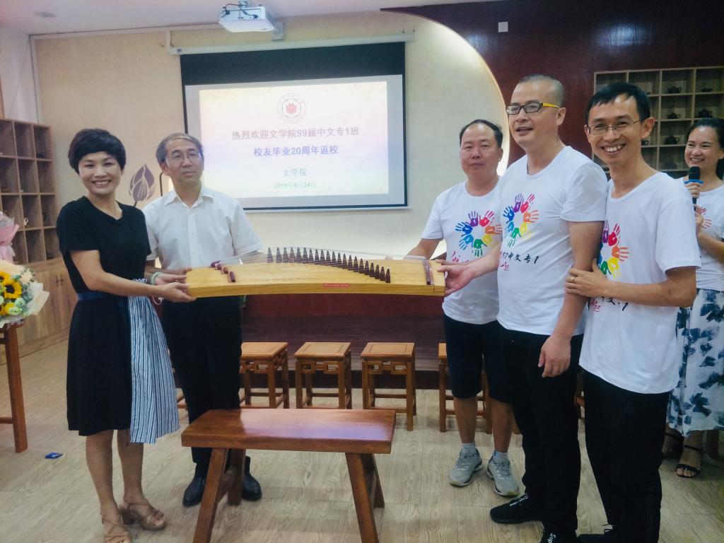 建设新局面出谋划策,黄院长对校友们的工作表示肯定与祝福,他期待校友们可以把二十年积累的知识财富通过著书创作等途径转化成智慧走向更远。接着杨秀明老师和王朝华老师对校友们取得的成就表示祝贺,他们与校友亲切交流,昔日师生如今互诉衷肠,校友们也共叙同窗情谊,聚会气氛充满温暖与感动。随后举行了校友捐赠仪式,师生合影留念。