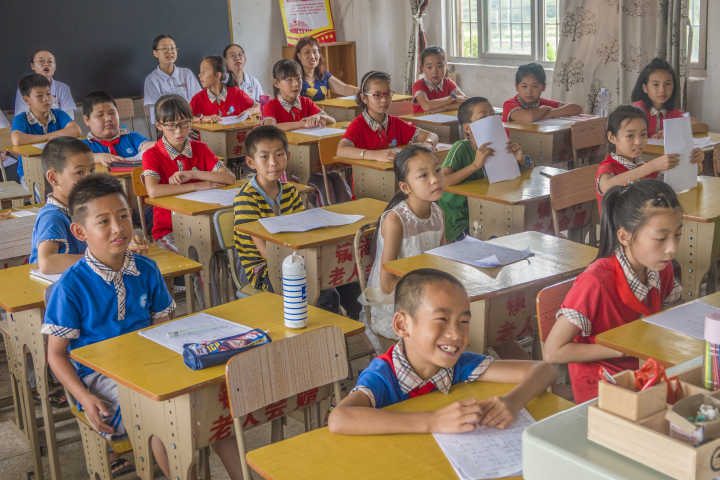党委副书记谢斌斌、院长助理杨杏红等五位老师带领实践团八名学生队员前往镇海村。活动开班仪式在镇海小学举行,指导老师许新华主持仪式,27位3-12岁的少年儿童及部分村民参与,镇海小学蓝全裕校长介绍了本地区和学校的概况,天使动漫
