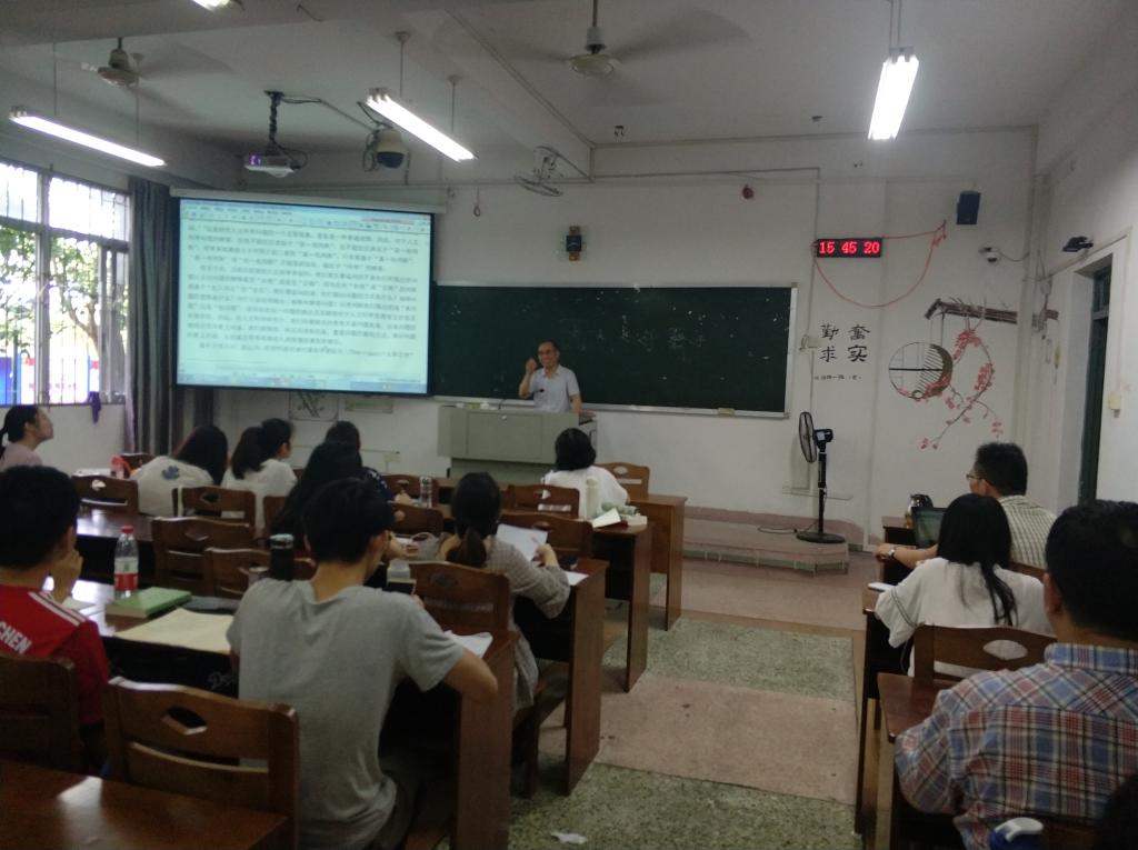 6月5日下午,郭英德教授向我们讲解了学术论文选题的三种类型:“从头讲”“接着讲”“照着讲”。“从头讲”就是利用新材料或用新角度去解读原有材料来填补学术空白的一种选题方法;“接着讲”是指在把握前人研究成果的基础上自己再对选题进行深入挖掘的方法;而“照着讲”是指找到一篇相对优秀的学术论文,自己解剖其结构,参考其提纲,通过学习别人写作思路,自己能照着这种写作思路换取研究对象进行写作的一种方法。郭教授认为“照着讲”是颇为可取的一种方法。接着郭教授从“阮元‘文章之学’的提出方式”“阮元‘文章之学’的阐释路径”“阮元‘文章之学’的文化内涵”“阮元‘文章之学’的意义指向”等四方面内容向我们展示了他的论文行文思路,给在座师生提供了一种可参照的论文写作范本。