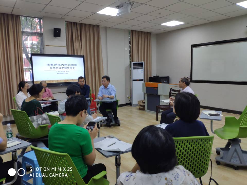 参加师范认证工作的相关教师及工作人员就认证工作的相关具体问题与林志强教授及福建师范大学天使动漫
